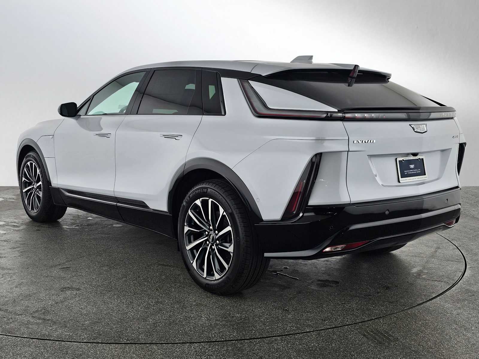 - LYRIQ's choreography starts at the front with the Cadillac emblem, radiates across the front grille, and continues with the headlamps. The lighting next moves to the side door handles, and dramatically concludes at the rear taillamps