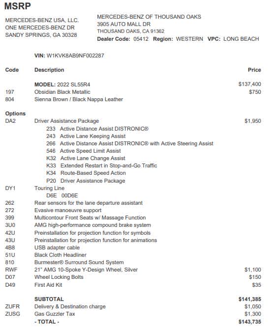 - Vehicle Name: Mercedes-Benz SL