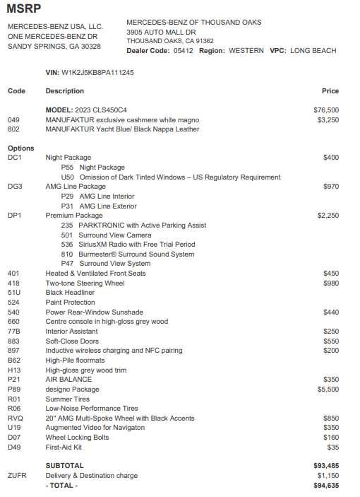 - Vehicle Name: Mercedes-Benz CLS