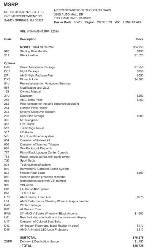 - Vehicle Name: Mercedes-Benz GLC